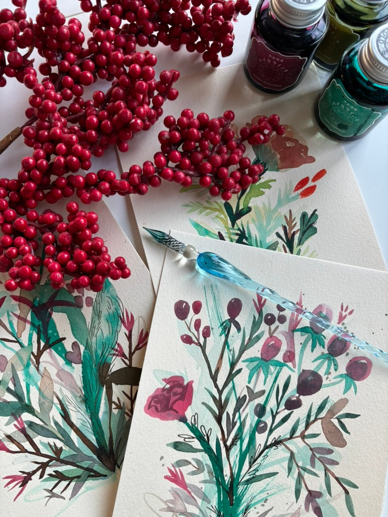 Á þessu námskeiði blekum við í jólalitunum, búum til kort, merkimiða og lítið pakkaskraut á meðan við hlustum á jólalög og njótum jólalegra veitinga.
