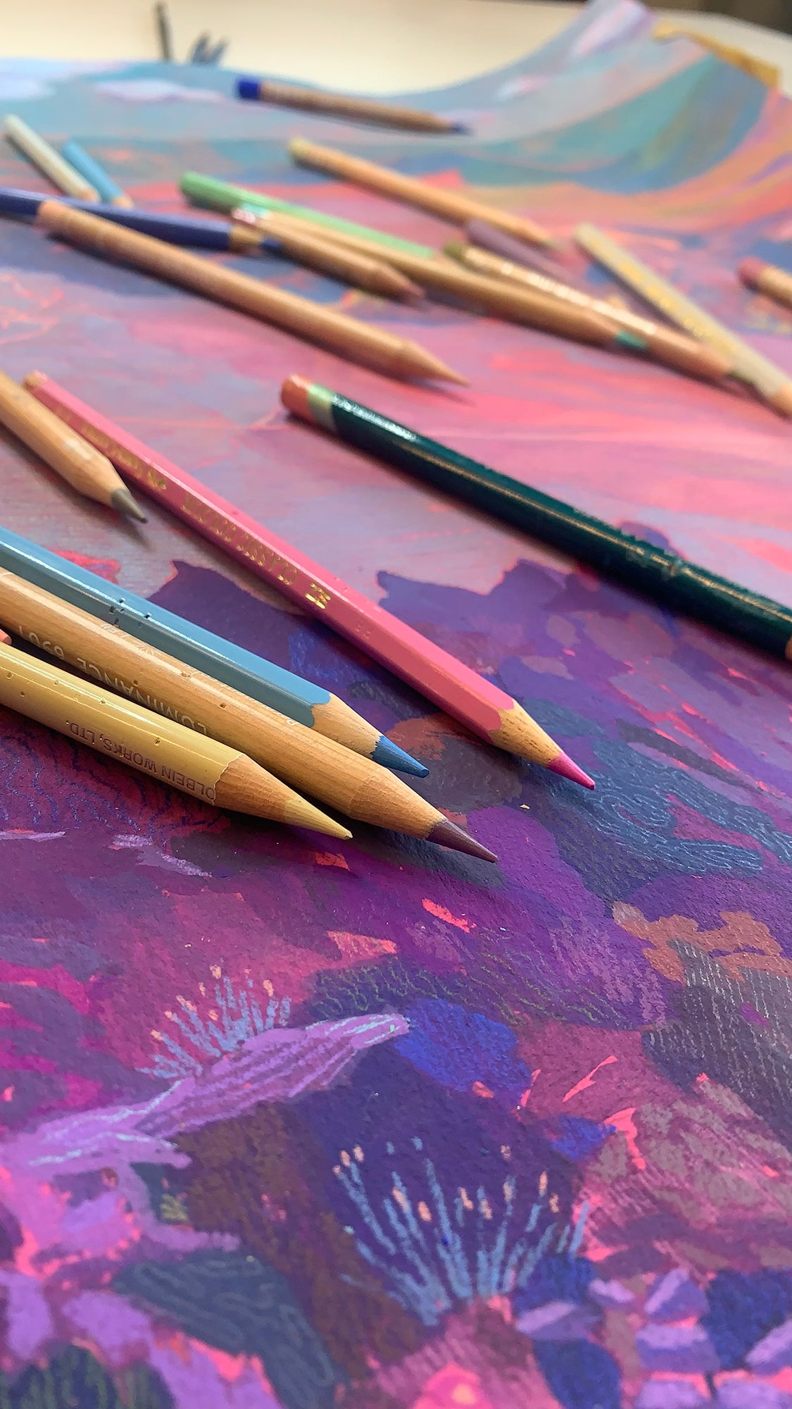 In this course we work with watercolour and gouache paint. We will mix different color shades to create a variety of tones, textures and moods. During the course, we will explore mixing techniques with pastels and colored pencils. No skills necessary, the course is suitable for beginners and more advanced but the teacher meets all students where they are in their artistic creation.